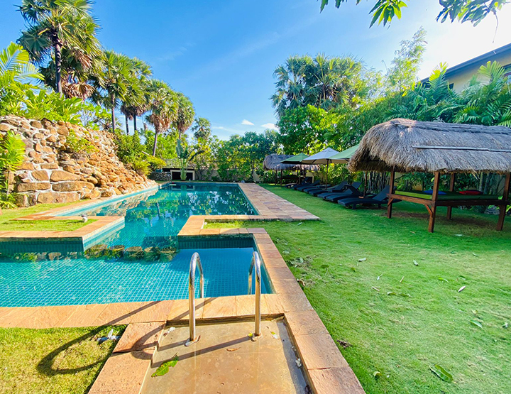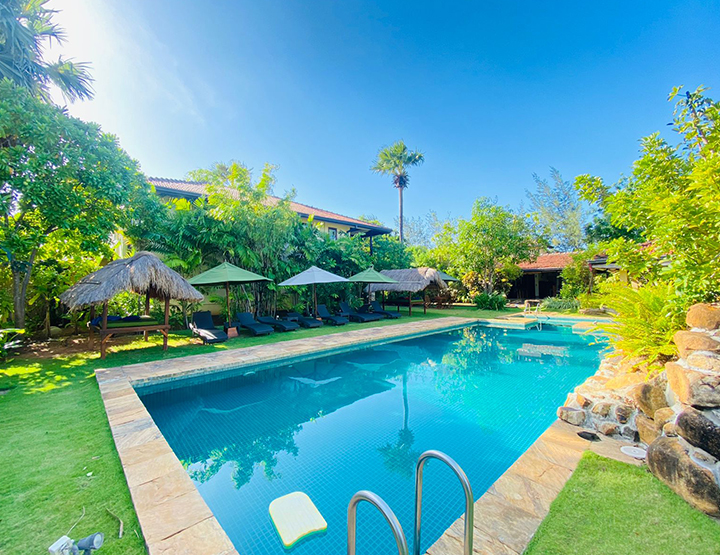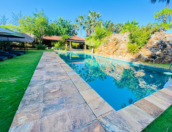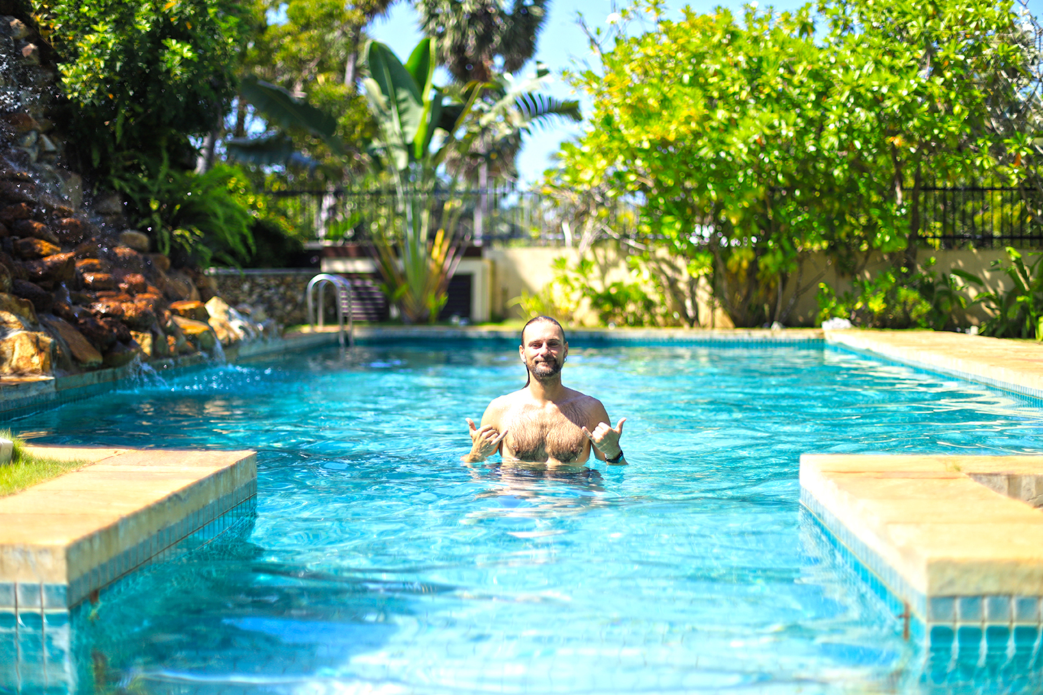 How about a dream of tropical beach that is not brown and sandy, but green and grassy? Our separate garden space with the swimming pool is precisely designed and maintained to enjoy the sunshine and tropical island environment from our backyard.